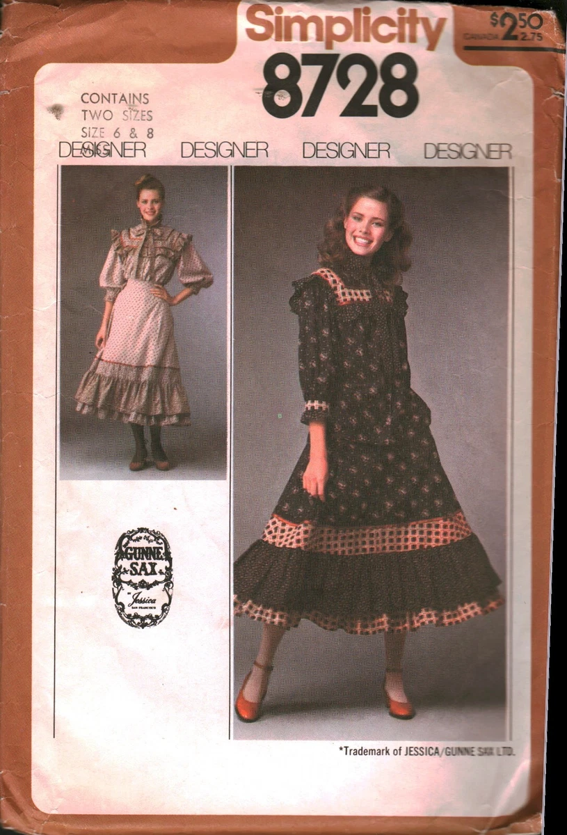 8728 Vintage Simplicity Sewing Pattern Misses 2 Pc Dress Gunne Sax Mcclintock Ebay
